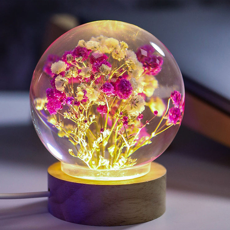 • Real Dried Flowers: Each globe encases delicate dried blossoms,  preserved in perfect stillness, glowing softly from within.
